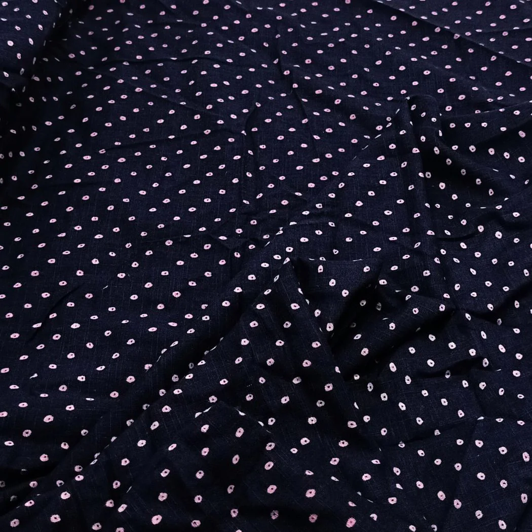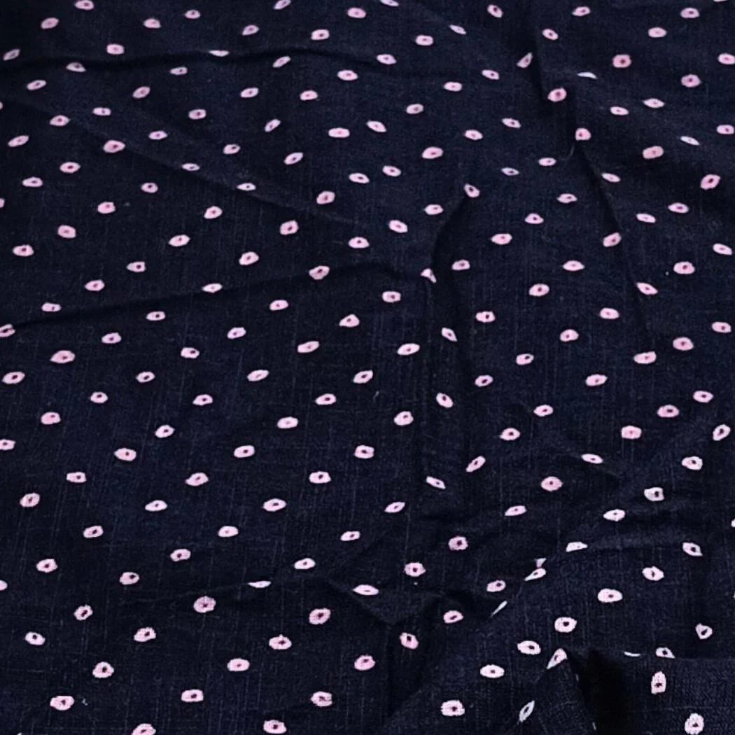 Navy Blue With Pink Dots Fabric