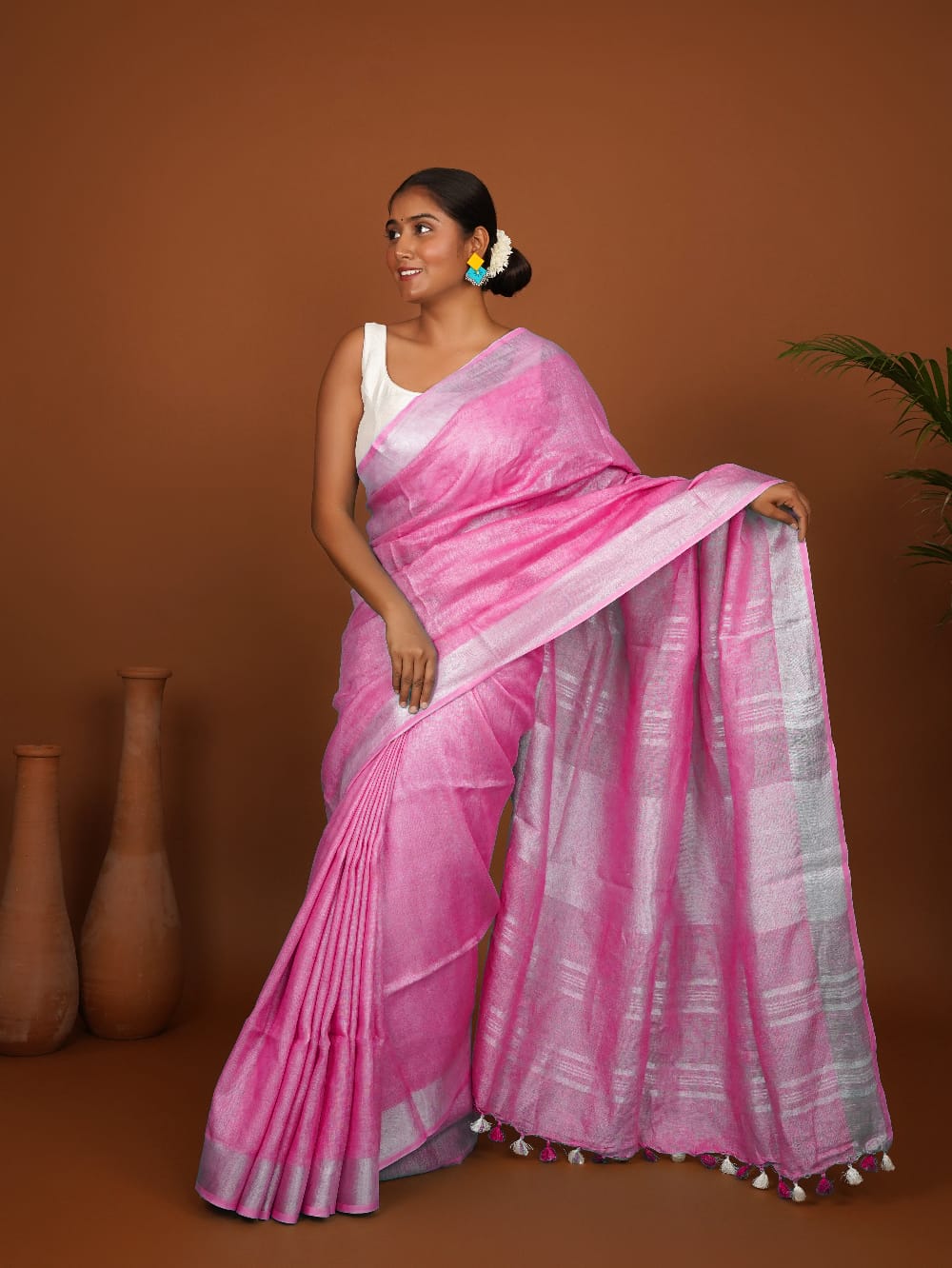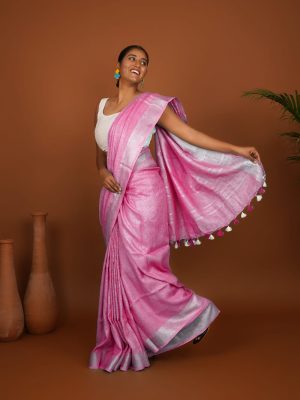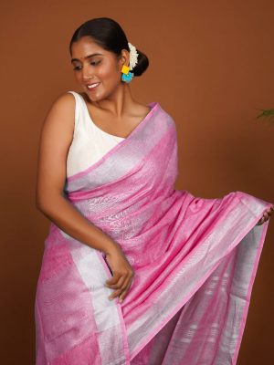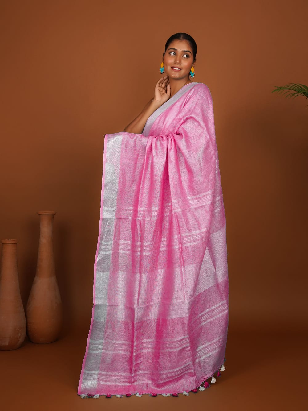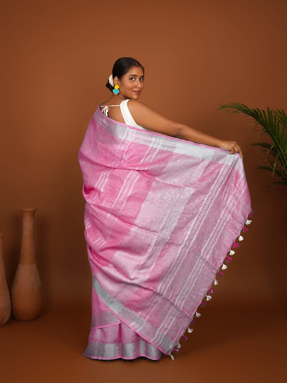 Soft Blossom Baby Pink Handcrafted Linen Saree